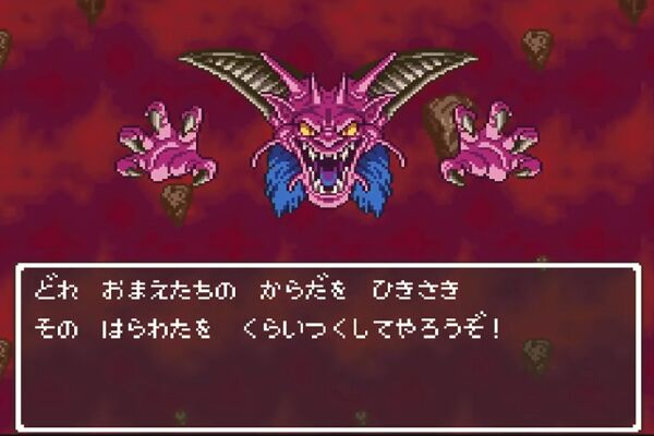 また、スーパーファミコン版ドラクエ6では、第二形態が使ってくる「突進」のアニメーションが異常にカッコいいと、当時からドット絵の評価が非常に高い魔王でもあります。徹底した管理能力と絶望的な蘇生コンボは、まさに大魔王の風格十分です。
