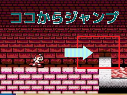 下から先回りして段差からジャンプして上のブロックに上手く乗ることができる。